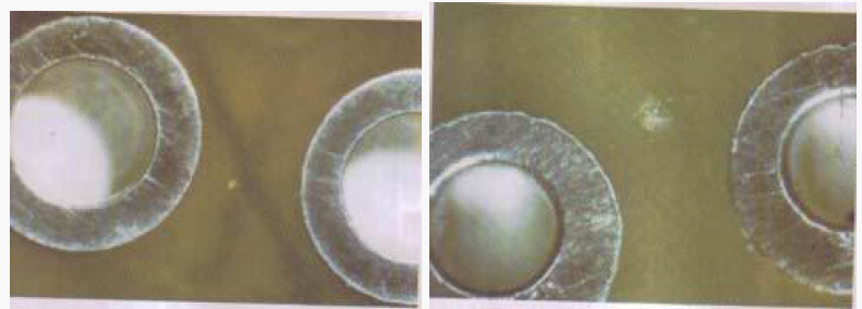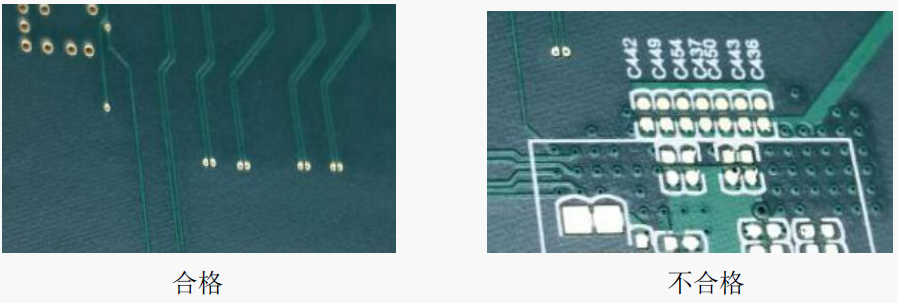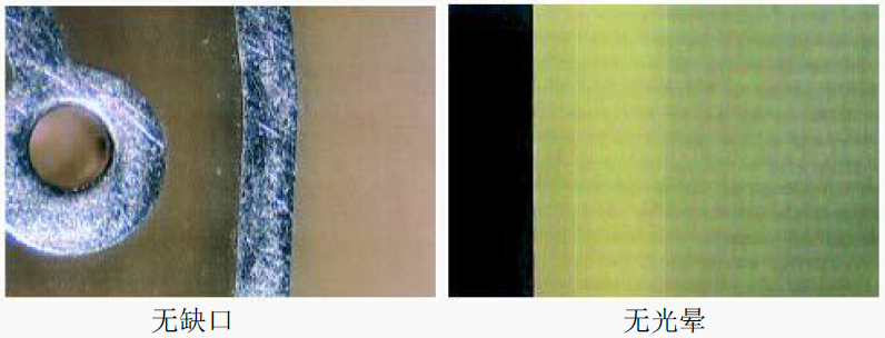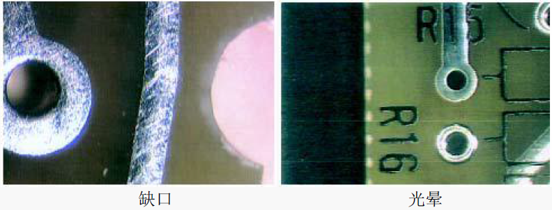 不合格:板邊出現(xiàn)的暈圈、缺口,>板邊間距的50%,或>2.54mm。