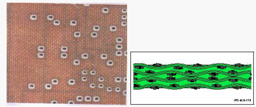 2、裸露迸裂之纖維造成線路間距縮減>20%。