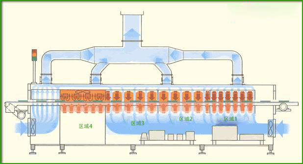 回流焊是一種焊接方法,其中將元件安裝在焊點(diǎn)上(或以糊狀形式)的電路板,或預(yù)制件),通過熔爐,焊料在熔爐中熔化并形成焊點(diǎn)。批處理爐(室式爐)可以一次裝載一批印刷電路板。操作員將給定批次板的溫度曲線輸入到爐控制器中,這會(huì)根據(jù)時(shí)間改變螺旋的加熱程度。烘箱氣氛也得到了很好的控制,包括使用真空?;亓飨涫綘t有利于小批量生產(chǎn)、試點(diǎn)項(xiàng)目以及必須仔細(xì)控制爐溫分布和氣氛的場(chǎng)合。第二種類型的熔爐內(nèi)置于技術(shù)生產(chǎn)線中。... 帶有未焊接元件的 PCB 從一端連續(xù)送入回流焊爐,并在另一端排出已經(jīng)焊接的元件。因此,內(nèi)置烤箱可以是普通傳送帶的一部分。他們從自動(dòng)機(jī)器沿傳送帶接收付款,無需操作員干預(yù)。沿烘箱長度的各個(gè)區(qū)域的溫度和傳送帶的速度決定了回流焊接的溫度曲線。圖 1 顯示了一個(gè)四區(qū)回流焊爐的例子。